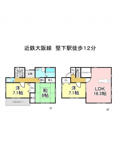 近鉄大阪線 堅下駅 まで 徒歩12分