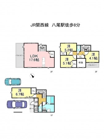 JR関西本線 八尾駅 まで 徒歩8〜9分