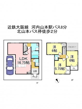 近鉄大阪線 河内山本駅 バス8分乗車 バス停北山本 まで 徒歩2分