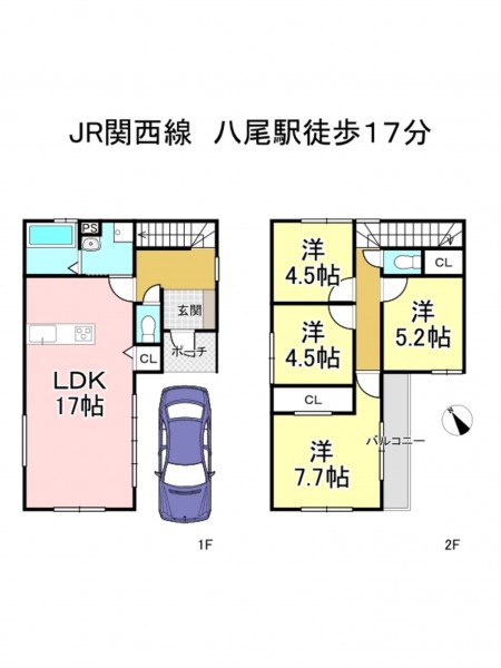 JR関西本線 八尾駅 まで 徒歩17分