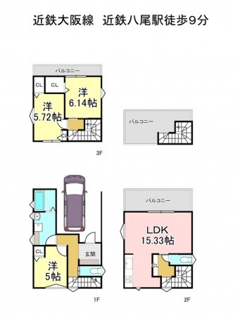 近鉄大阪線 近鉄八尾駅 まで 徒歩9分