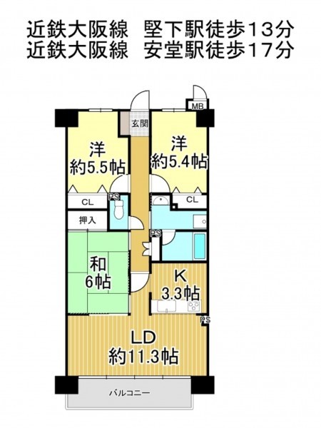 近鉄大阪線 堅下駅 まで 徒歩13分