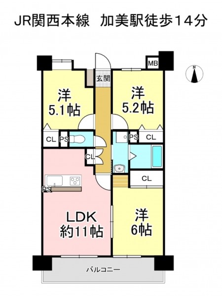 JR関西本線 加美駅 まで 徒歩14分