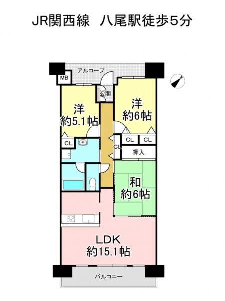JR関西本線 八尾駅 まで 徒歩7分