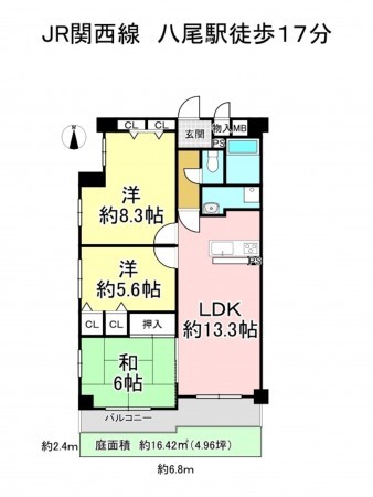 JR関西本線 八尾駅 まで 徒歩16分